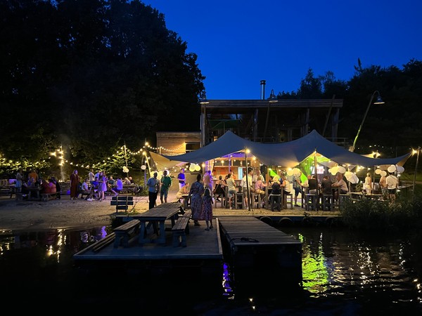 Wanneer zij de fakkels zullen volgen komen zij aan op het terras aan het water waar zij kunnen genieten van jou feest. Naast het terras ligt het strand waar je heerlijk met je blote voeten kunt zitten en genieten van het strand-gevoel. Het terras aan het water zal aanvoelen als een mini festival met als belangrijkste gast jij! Genieten van een hapje, drankje en muziek zal het een avond worden om niet te vergeten.